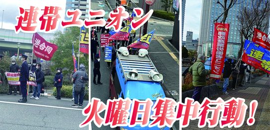 連帯ユニオン・火曜日行動 11/18 大津1次事件控訴審 不当判決に対する抗議声