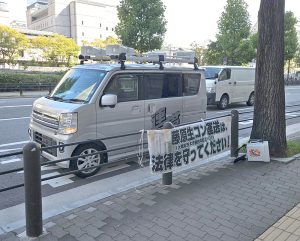 午前9時ころから約1時間の行動でしたが、関生支部の訴えに、北浜のオフィス街を行き交う会社員や市民らに多いにアピールすることができました。ビラは、27の配布でした。引き続き、取引先前での宣伝活動を展開します。