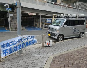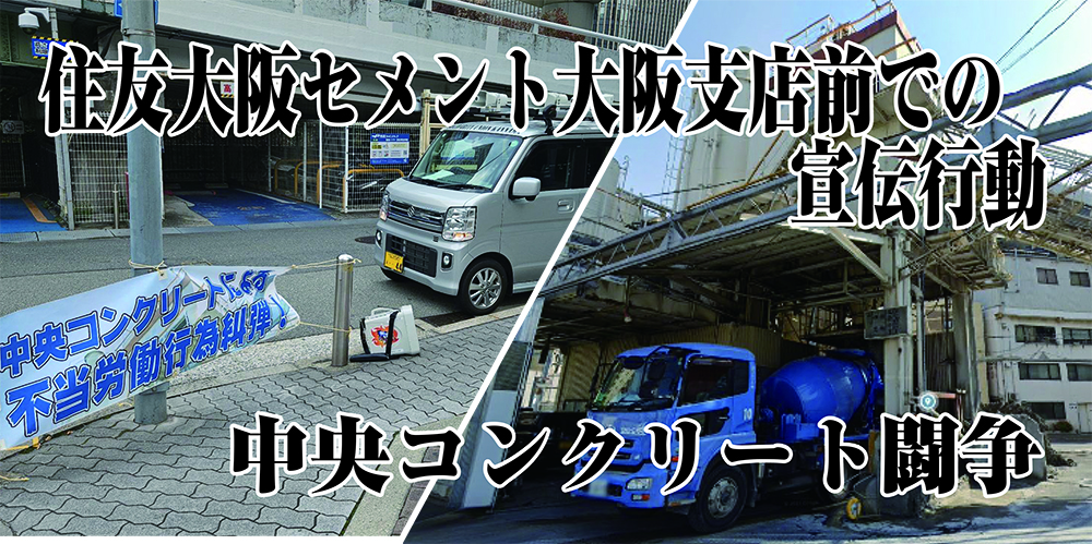 不当労働行為企業と労働委員会から認定された「中央コンクリート株式会社(代表取締役吉田要)」の周知と、「関生支部弾圧の不当性・異常な労組弾圧」の事実を周知するために、連帯ユニオン関生支部・大阪Bブロックは12月3日、背景資本の「住友大阪セメント株式会社大阪支店」前でで「中央コンクリート社の不当労働行為を労働委員会が認定」「関生支部弾圧事件を知って欲しい」などを掲げた情宣活動を展開しました。