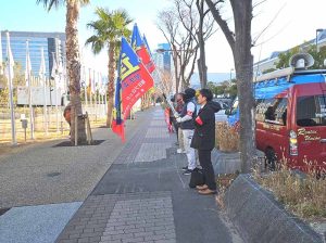 「大阪広域生コン協組の関生潰しを許さない」スタンディングデモ第29弾が、大阪広域生コンクリート協同組合テクノ・ラボ大阪前で開催され、連帯ユニオン関生支部と関西ゼネラル支部の仲間が結集しました。