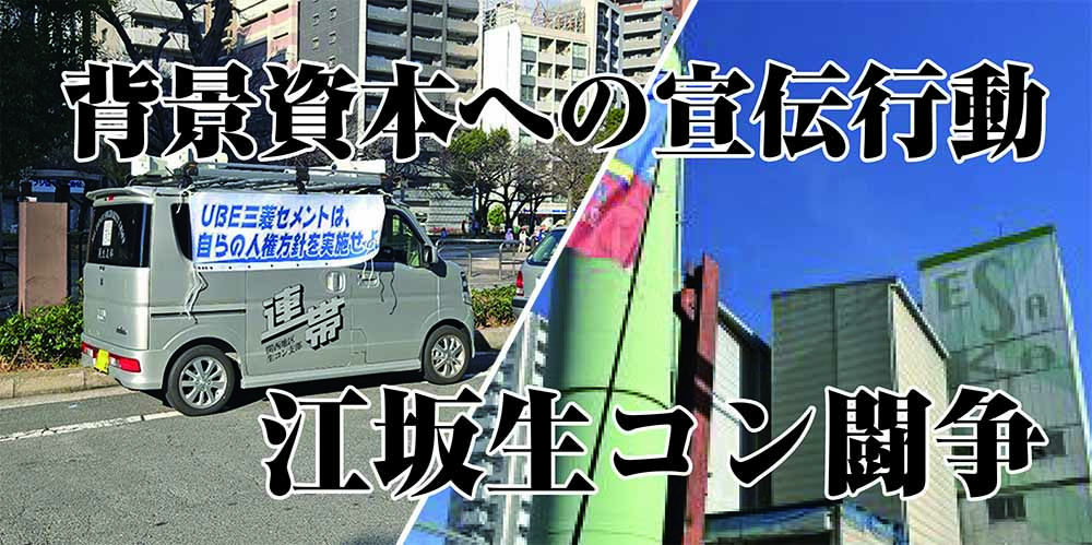 江坂生コン社が、従業員(ドライバー)を退職強要したことで、2025年8月20日に組合結成した関生支部との団体交渉を拒否していることの周知と、「関生支部弾圧の不当性・異常な労組弾圧」の事実を周知するために、連帯ユニオン関生支部・大阪Bブロックは1月8日、背景資本の「UBE三菱セメント株式会社大阪支店」前で「江坂生コンの団交拒否糾弾」「関生支部弾圧事件を知って欲しい」などを掲げた情宣活動を展開しました。