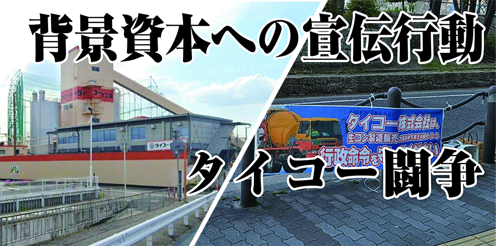 大阪広域生コン協組の関生支部潰しと連携したタイコー社の関生支部潰しを狙った不当労働行為・人権侵害を、私たち関生支部は断じて許すことはできません。