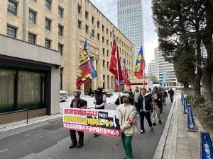 那須電機鉄工株式会社(本社、東京・新宿)の「不当労働行為糾弾、労働組合員への選別解雇、労働組合潰しを許さない、労使紛争を起こした責任を追及する」を掲げた港合同・昌一金属闘争、背景資本の三井住友銀行大阪本店に向けたデモ行進が、大阪市中央区のオフィス街で開催され、支援者を含めた20人が結集しました。