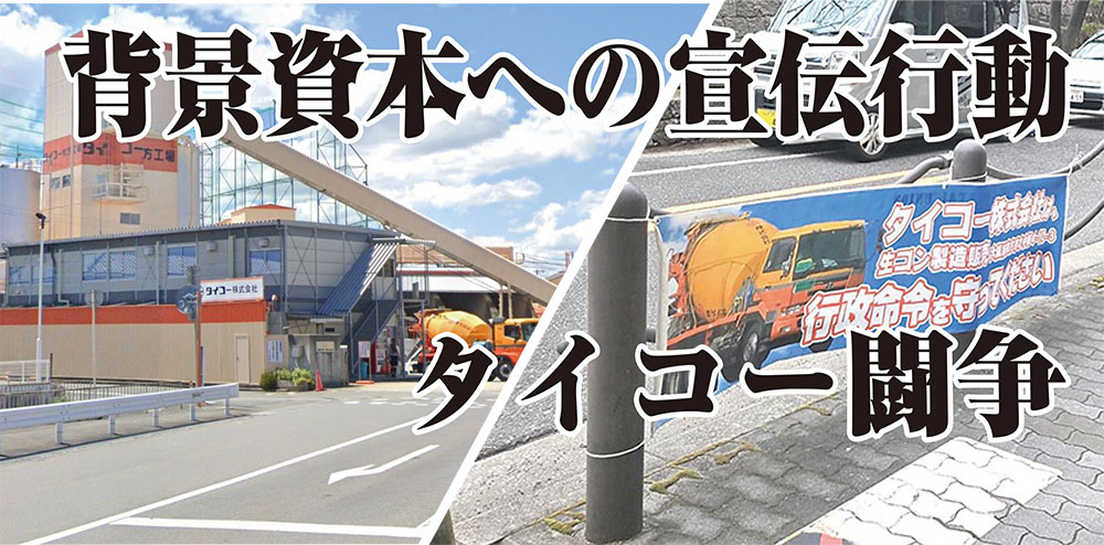 大阪広域生コン協組の関生支部潰しと連携したタイコー社の関生支部潰しを狙った不当労働行為・人権侵害を、私たち関生支部は断じて許すことはできません。