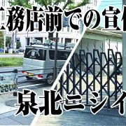 また、この日は、午前8時から、大阪府茨木土木事務所前で「9.26北摂集会・茨木」の情宣活動を展開しました。