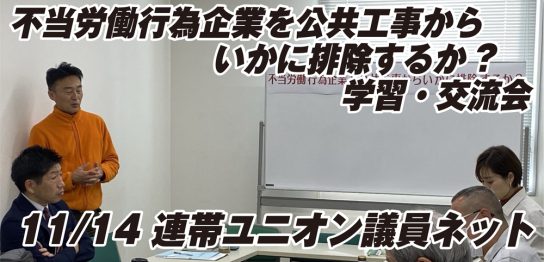 連帯ユニオン議員ネット「不当労働行為企業を公共工事からいかに排除するか?」学習・