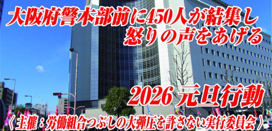 大阪府警本部前に450人が結集し怒りの声をあげる / 2026元旦行動 11/1