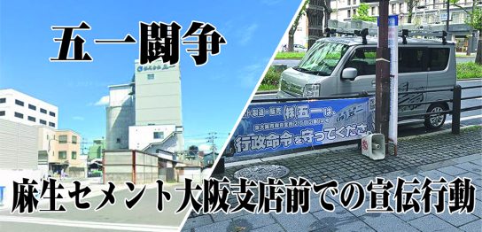 麻生セメント大阪支店前での宣伝行動 / 五一闘争 あらぬ事故の責任押しつけられ退