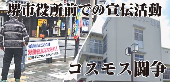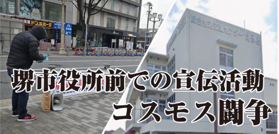 堺市総合福祉会館前での宣伝活動 / コスモス闘争〈関西ゼネラル支部〉 TM特別報